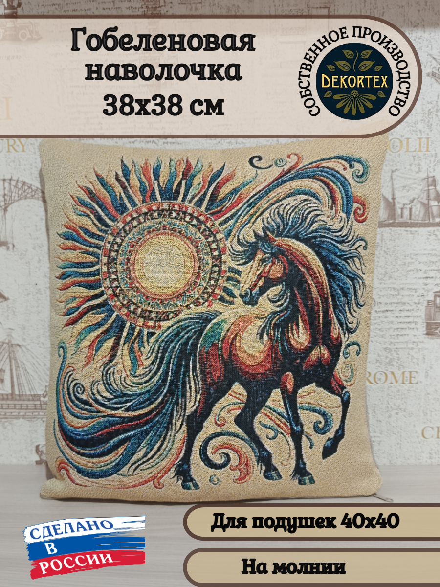 Гобеленовый декор. Декоративный чехол из гобелена для интерьерной подушки размером 40*40 +/- 3 см. квадратной формы, на молнии. Производство DEKORTEX — Россия. Высокая плотность и износостойкость. Режим стирки деликатный — 30 градусов.