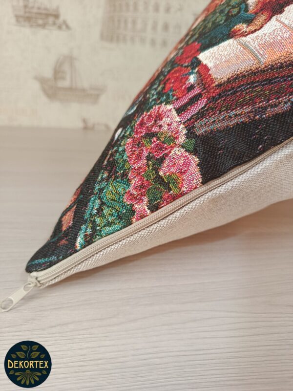 Гобеленовая наволочка для декоративной подушки. Размер наволочки: 50×70см. производство Россия. Изделие собственного производства сшито из отечественной жаккардовой ткани. Задняя часть выполнена из мебельной рогожки так же Российского производства. Все ткани используемые для производства декоративной наволочки производятся с соблюдением ТУ и ГОСТ РФ. Собственное швейное производство позволяет контролировать качество продукции на всех этапах до поступления на склад и предлагать покупателям товары высокого качества по выгодным ценам. Состав ткани 100% полиэстер. Плотность гобелена 380 г/кв.м. Продается без подушки-наполнителя. Подушку-наполнитель так же можно купит у нас. Размер наволочки может отличаться от заявленного +/- 2 см. Допускается деликатная машинная стирка при температуре 30 градусов. Гладить при средней температуре.