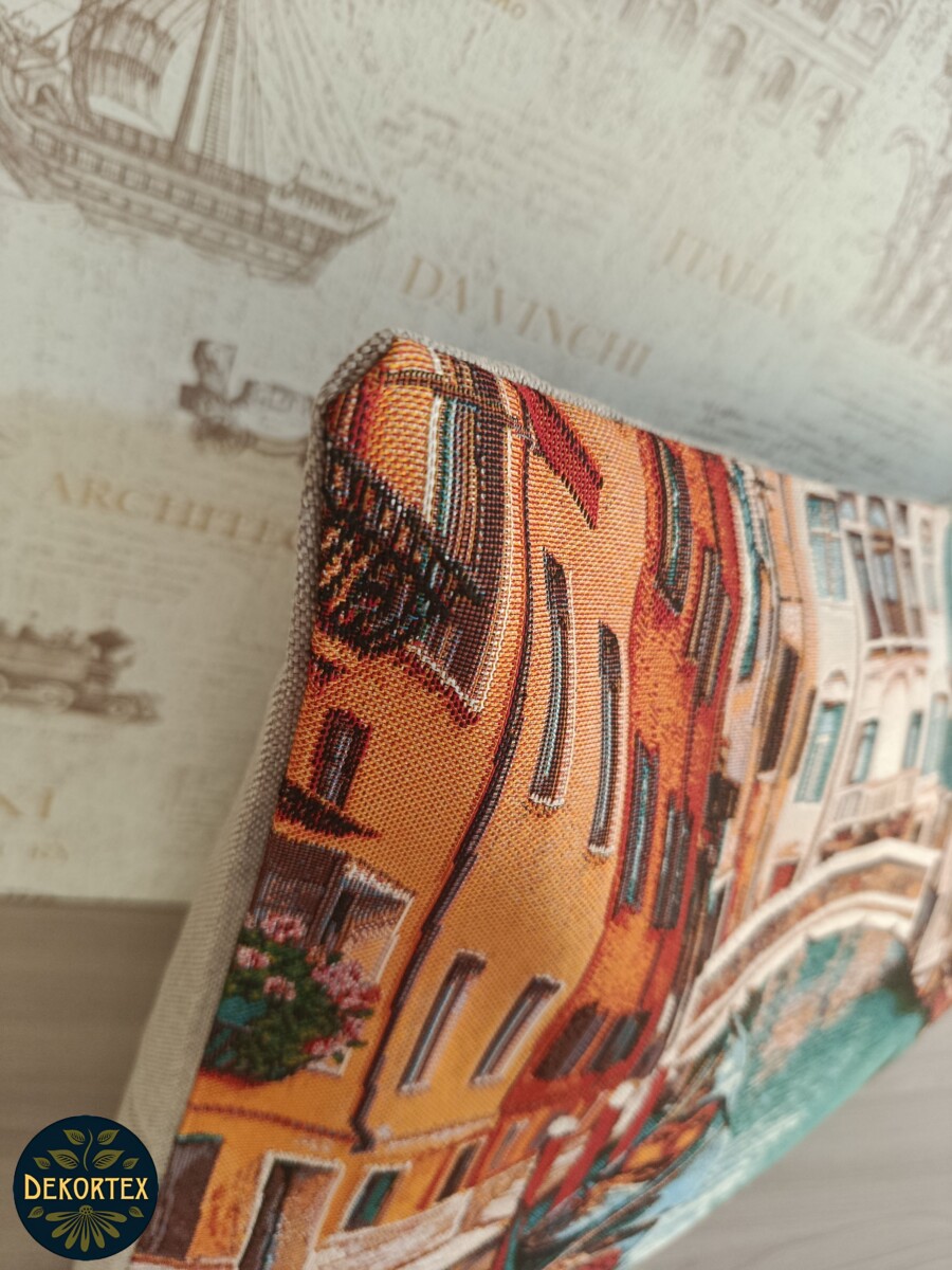 Гобеленовая наволочка для декоративной подушки. Размер наволочки: 50×70см. производство Россия. Изделие собственного производства сшито из отечественной жаккардовой ткани. Задняя часть выполнена из мебельной рогожки так же Российского производства. Все ткани используемые для производства декоративной наволочки производятся с соблюдением ТУ и ГОСТ РФ. Собственное швейное производство позволяет контролировать качество продукции на всех этапах до поступления на склад и предлагать покупателям товары высокого качества по выгодным ценам. Состав ткани 100% полиэстер. Плотность гобелена 380 г/кв.м. Продается без подушки-наполнителя. Подушку-наполнитель так же можно купит у нас. Размер наволочки может отличаться от заявленного +/- 2 см. Допускается деликатная машинная стирка при температуре 30 градусов. Гладить при средней температуре.